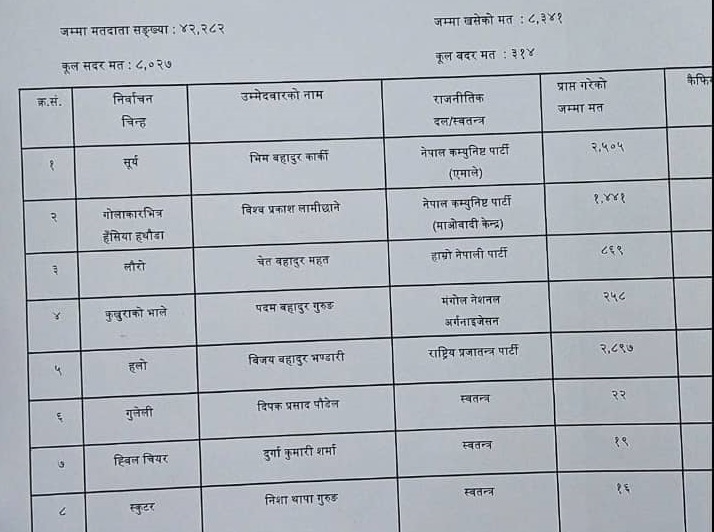 कास्की २ क मा प्रदेशसभाका ८ हजार मतगणना गर्दा हलो अगाडी